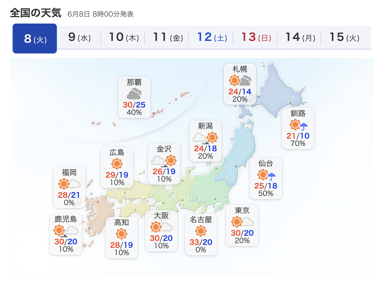 3年くらい前の夏に沖縄より北海道の方が10度以上高くて話題なってたような