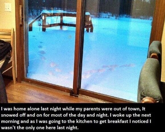 次の朝外を見たら窓の外に足跡があった