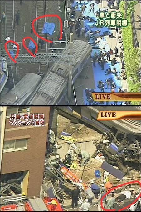 電車に挟まって死んでる映像が生中継されてるのは本当にやばかった
