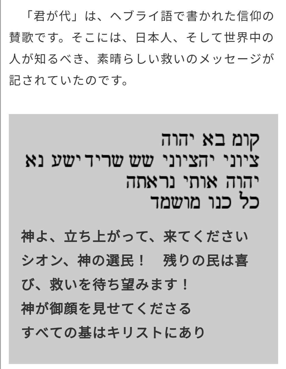 なので、君が代がヘブライ語で読めるというのはガセ。