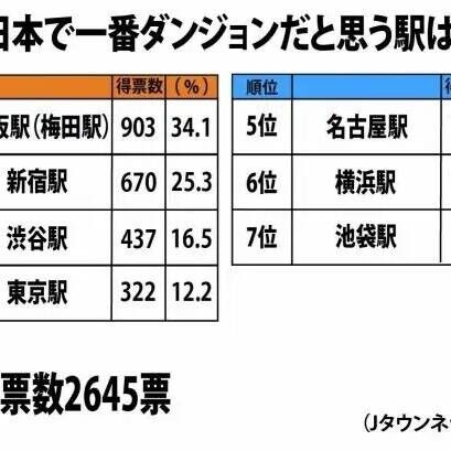 都民がバラバラに入れて大阪民が梅田にいれてる感じか