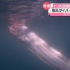 日本近海の水深200メートル以下の深海に生息すると考えられていますが、富山湾の沖合50メートル、水深2メートル付近で地元のダイバーが撮影しました。生きて泳ぐ姿が撮影されるのは非常に貴重だというサケガシラ。体長およそ1メートル50センチで人の背丈ほどあります。