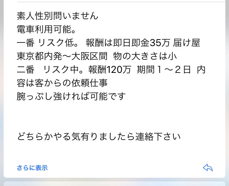 軽い転売ならともかく受け子はなぁ…
