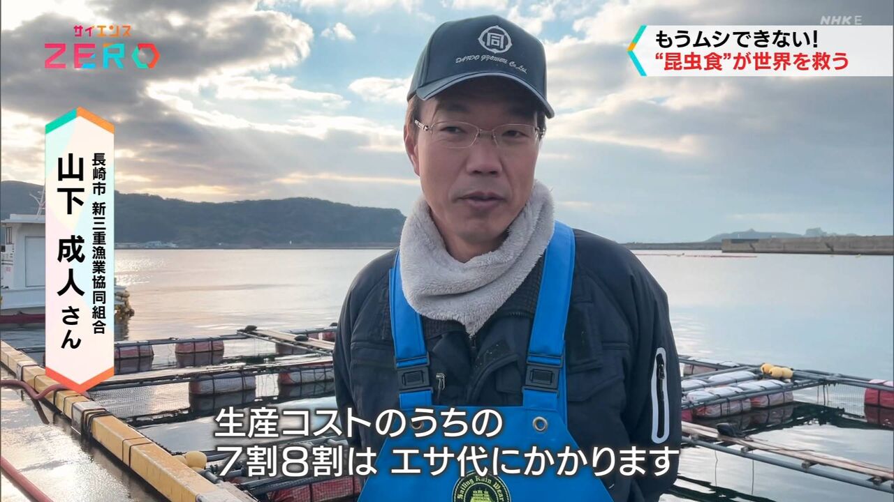 昆虫を魚に食べさせて、その魚を食べるのが良いかと。アブの幼虫で育てた真鯛とか。