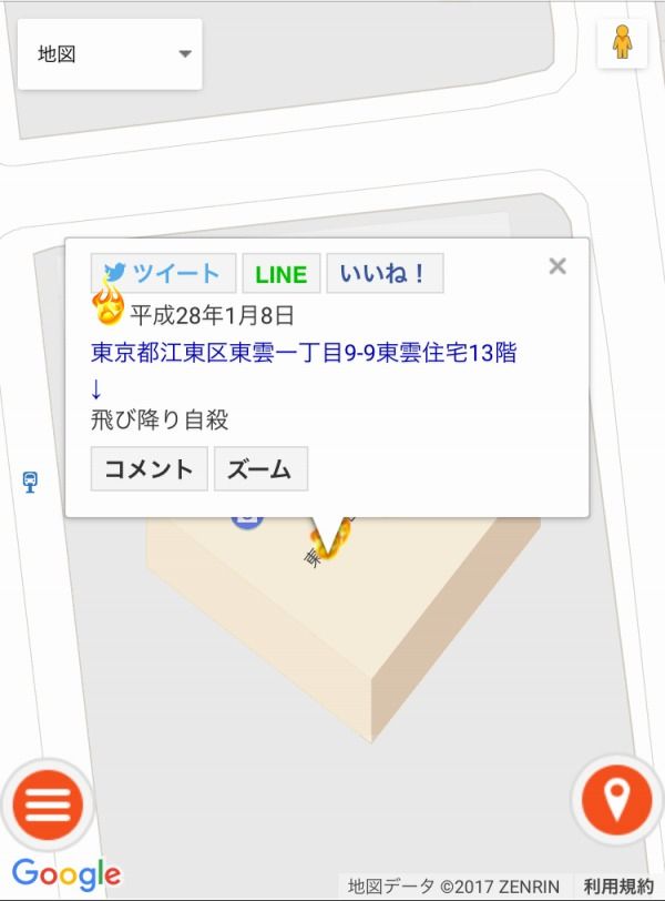 ロケでその現場にいたけど、その時若いカップルがそのマンションに入っていくの撮ってたよ