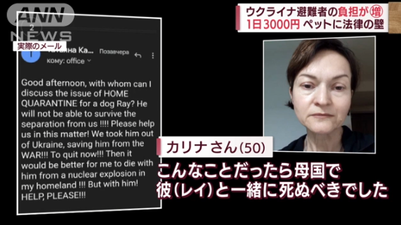 日本に避難した、カリナ・ターニャさん:「レイは180日の待機期間を過ごすため取り上げられました。とても残念です。今までいつも一緒にいたので、とても心配しています」