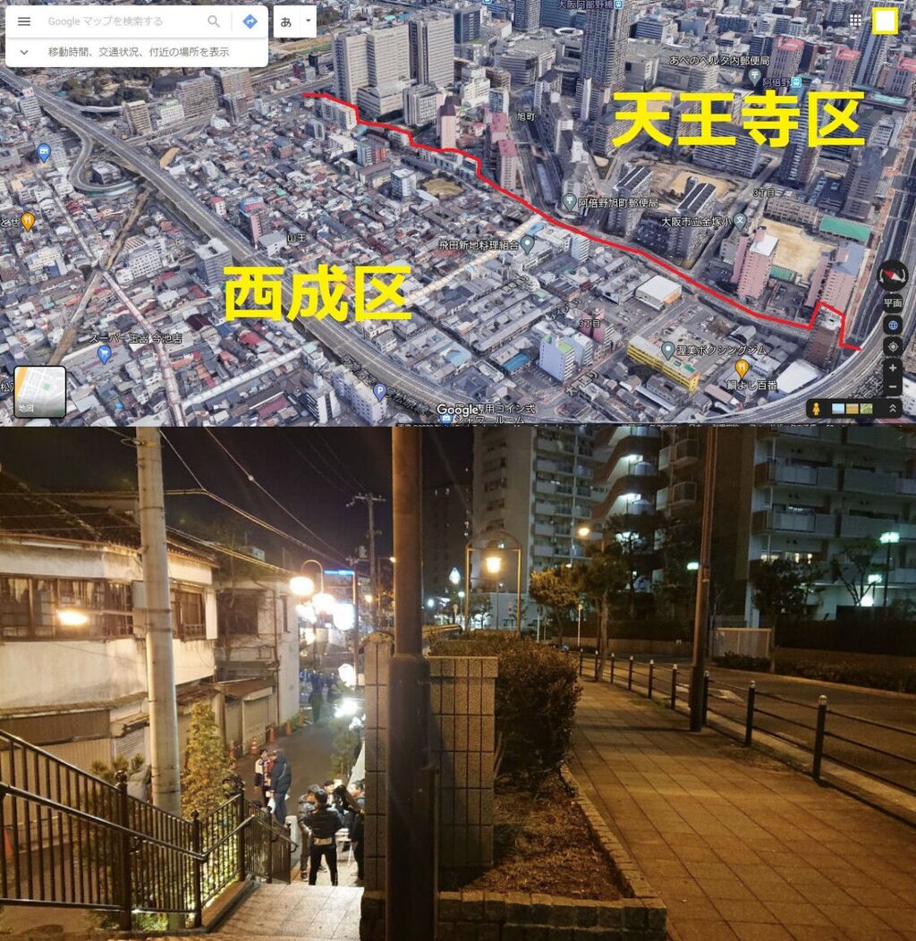 大阪は上町台地っていう縦長の台地の上に発展してきたから、そこから外れると急に水捌けの悪い貧民街になる