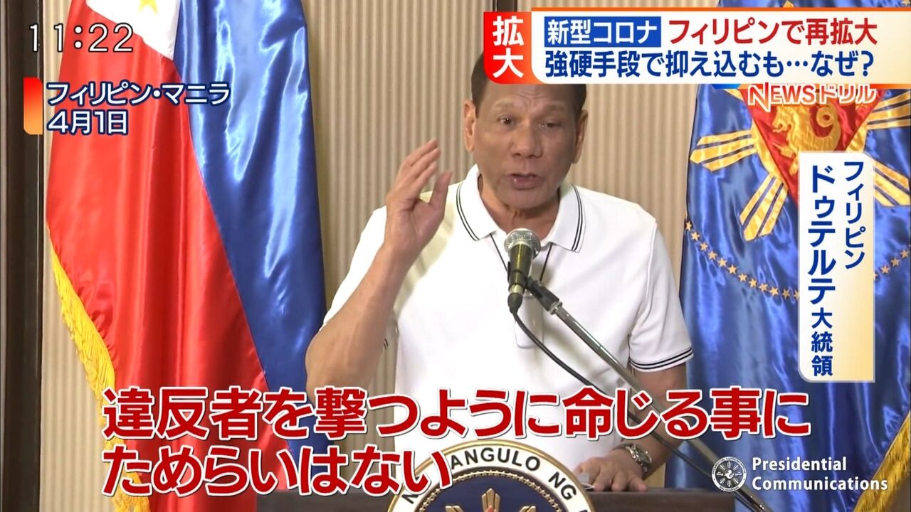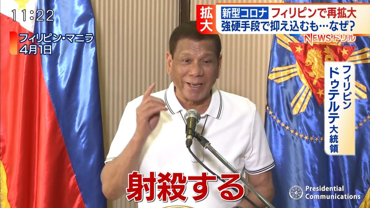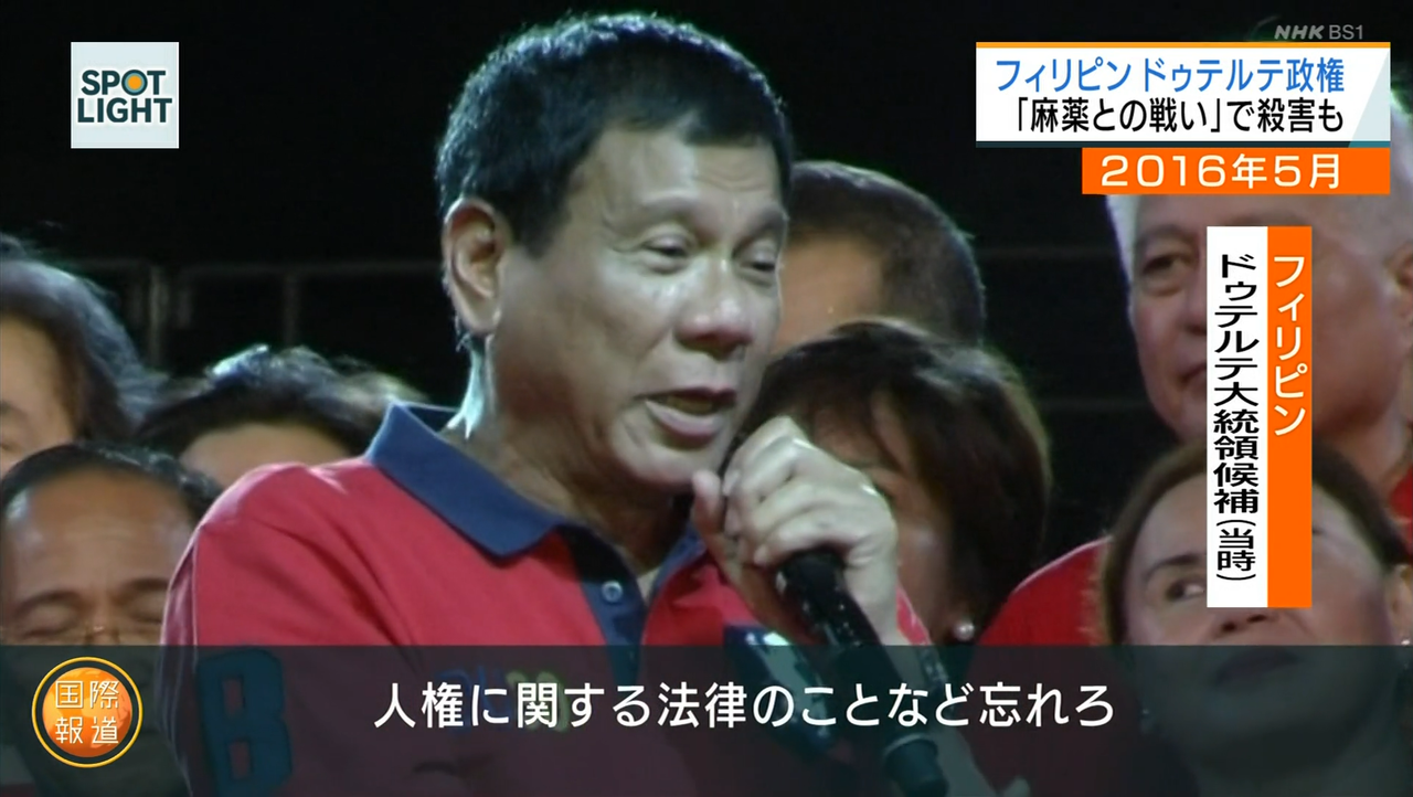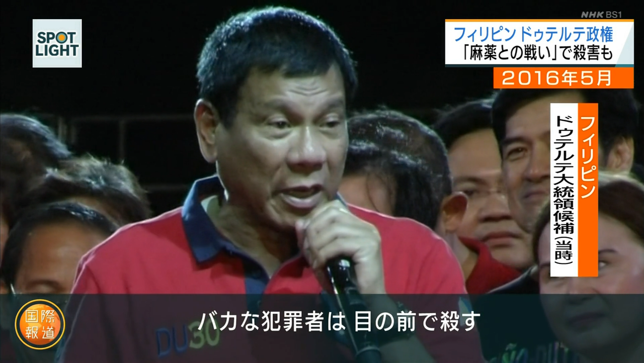 4(投)麻薬撲滅を掲げ大統領に就任後1か月で1800人を処刑、半年で6182人を処刑