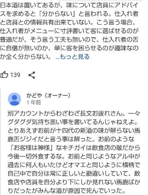 安い店だからそれなりの接客やサービスしかしないからそれでも良かったら覚悟して来いってのが店主の信条