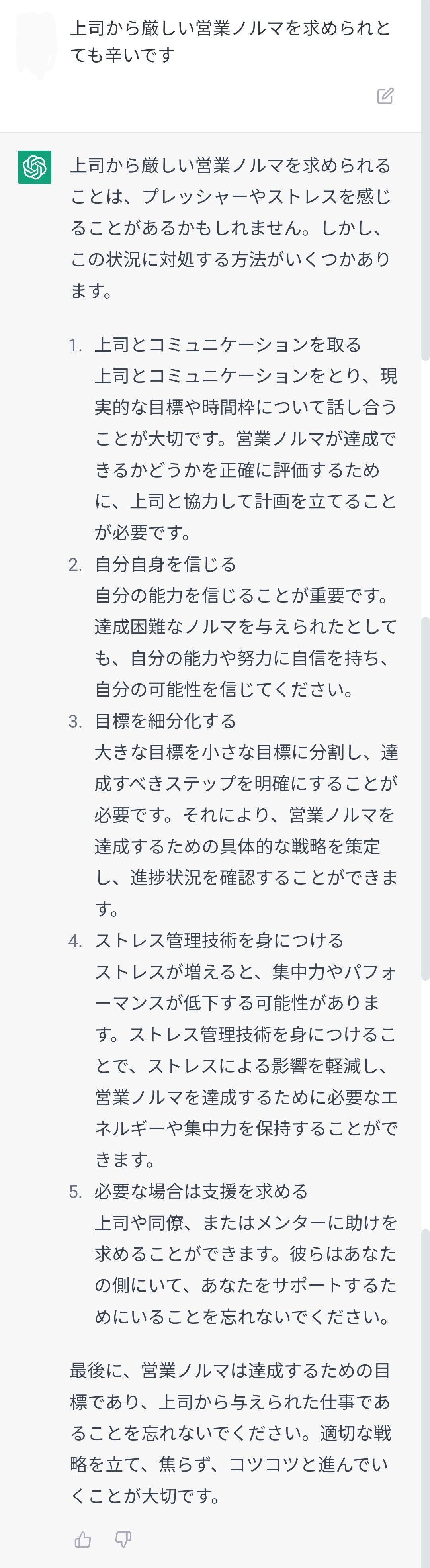 努力してノルマ達成すれば良いじゃん!みたいなクソ返答よりは役に立つな
