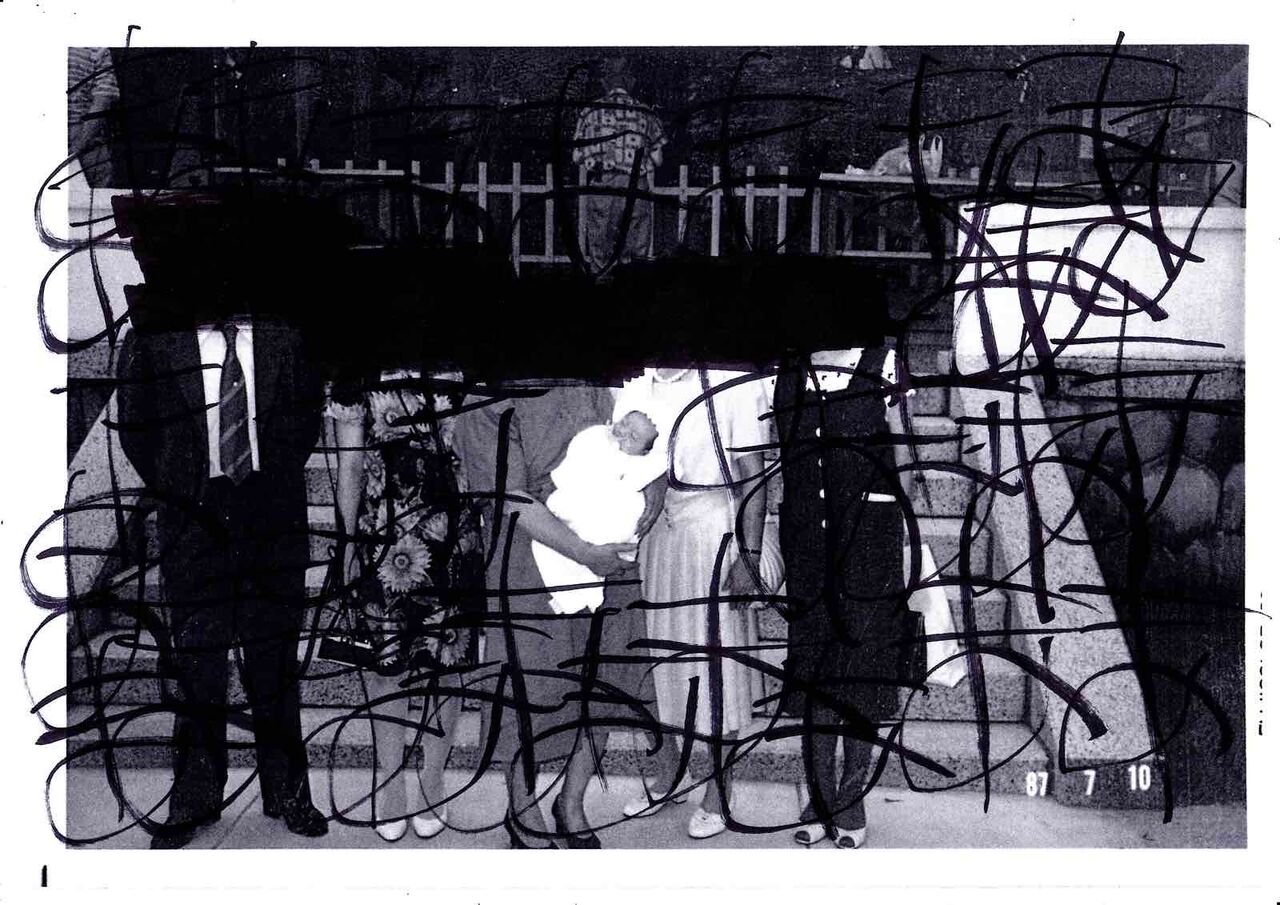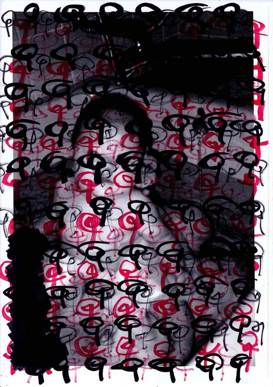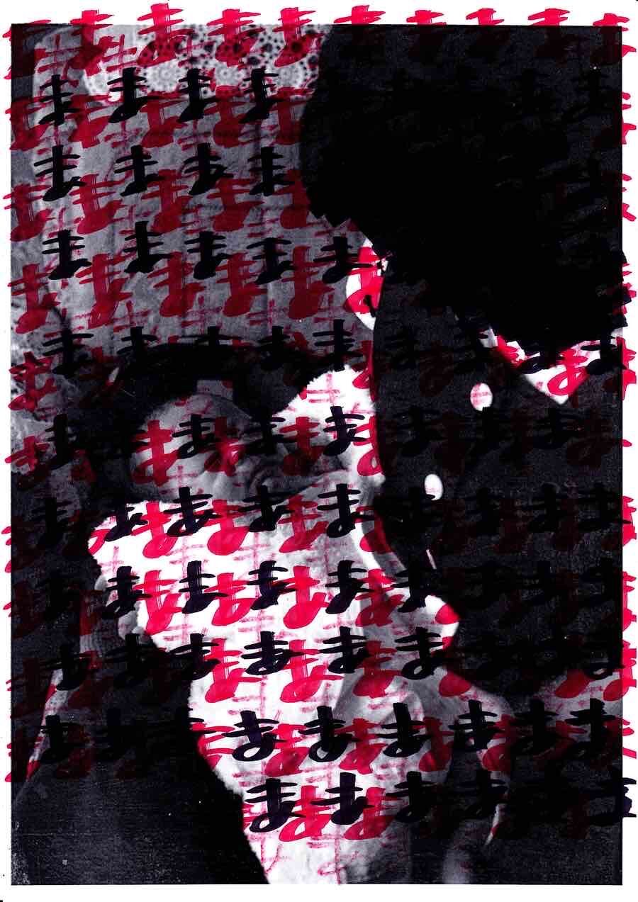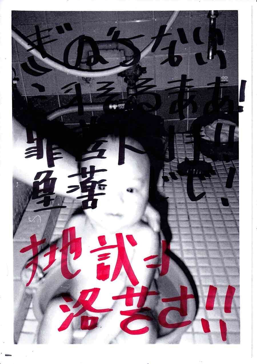 なんか直立してる女の写真に不気味な落書きされてるやつ