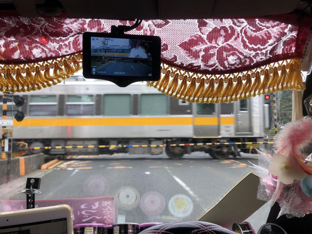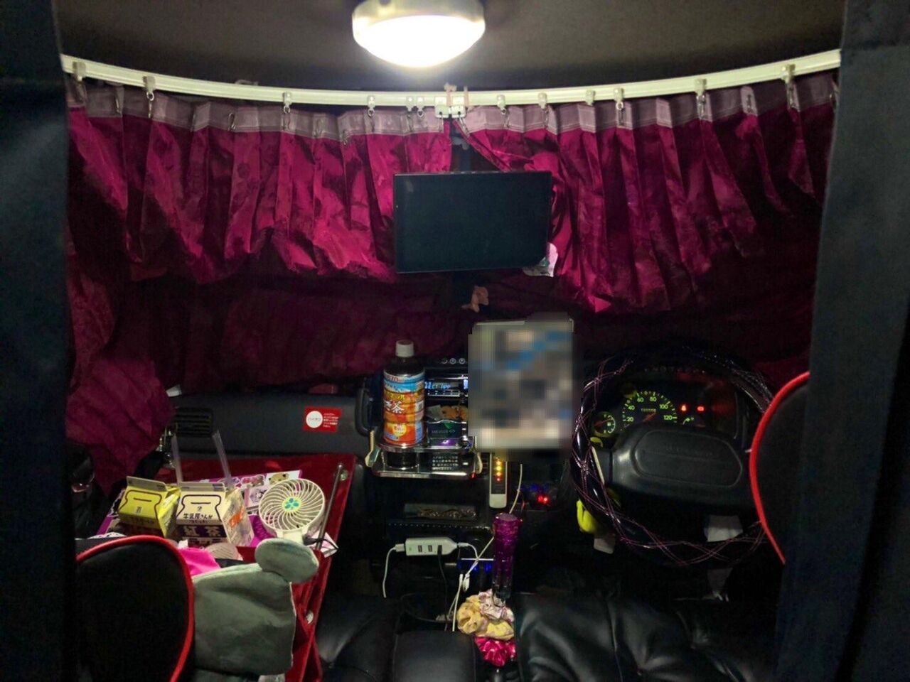 フロントガラスのカーテンは違反な気がするが