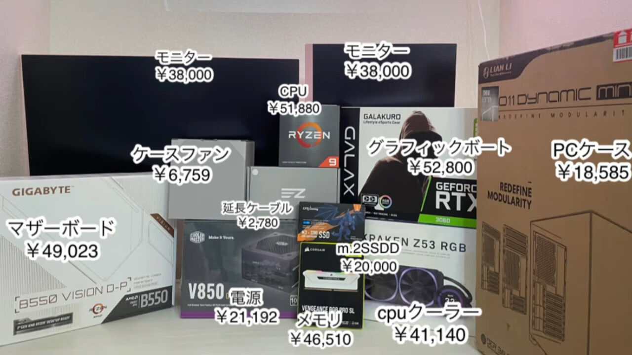 確か初めての構成はこんなんのでCPU/GPUの豪華主義で若かったわ