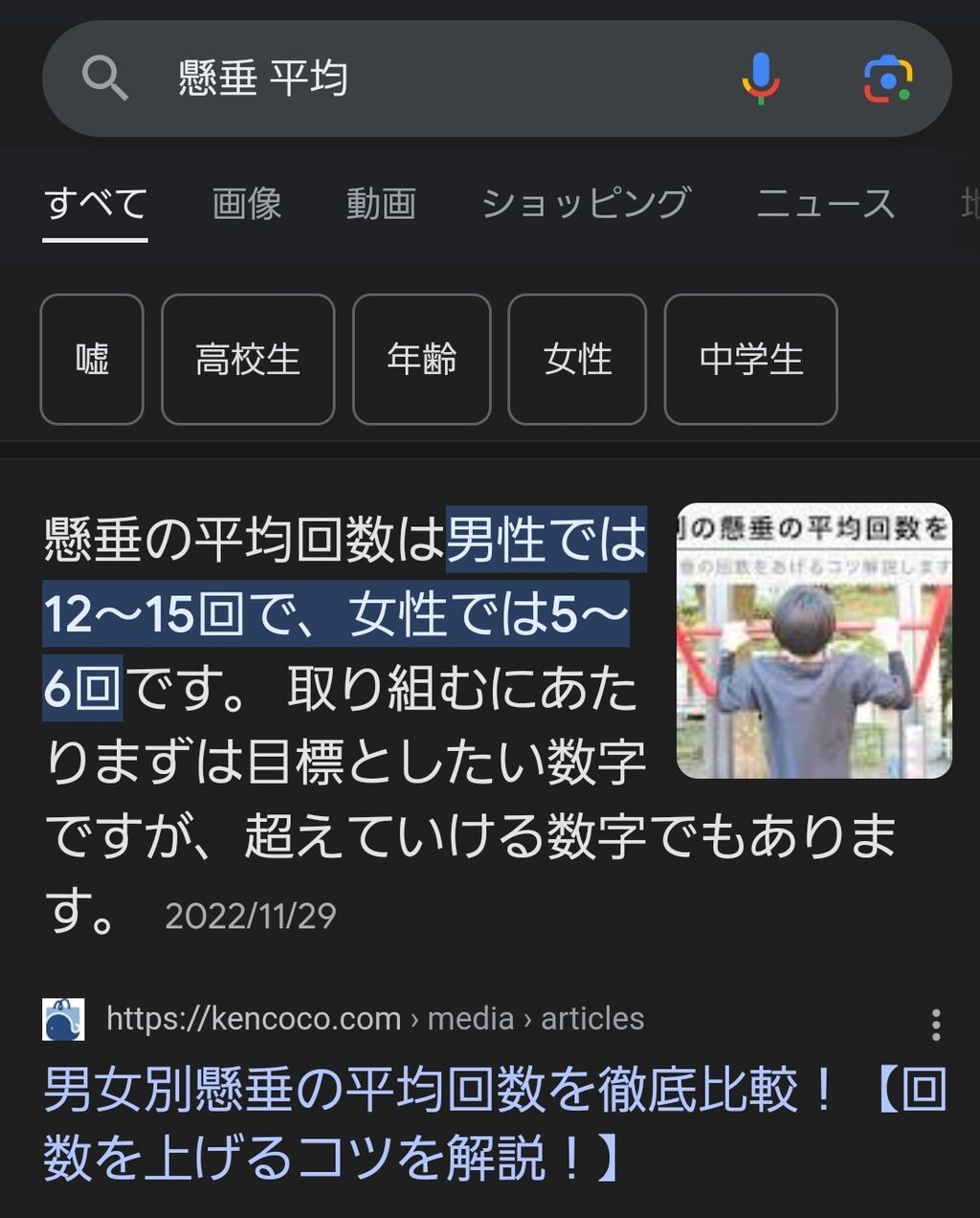 60kgもない腕細いヒョロガリが反動使って懸垂20回みたいなのを含むから平均がバグる