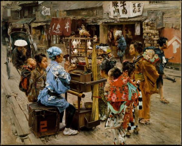 明治時代初期の市井の風景を水彩画、油絵、パステル画で描いたメンス。同記事は1891年にブルームの挿絵とともに『Japonica』の書名で一冊の本として出版されたニキーwww。