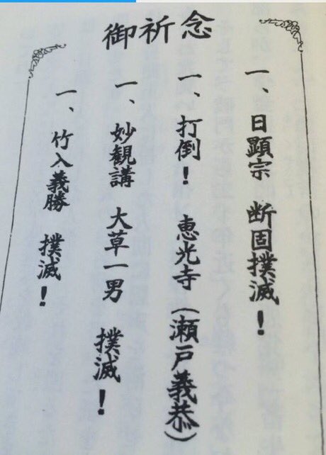 仏敵っちゅか、富士大石寺を呪詛ってるだけじゃん