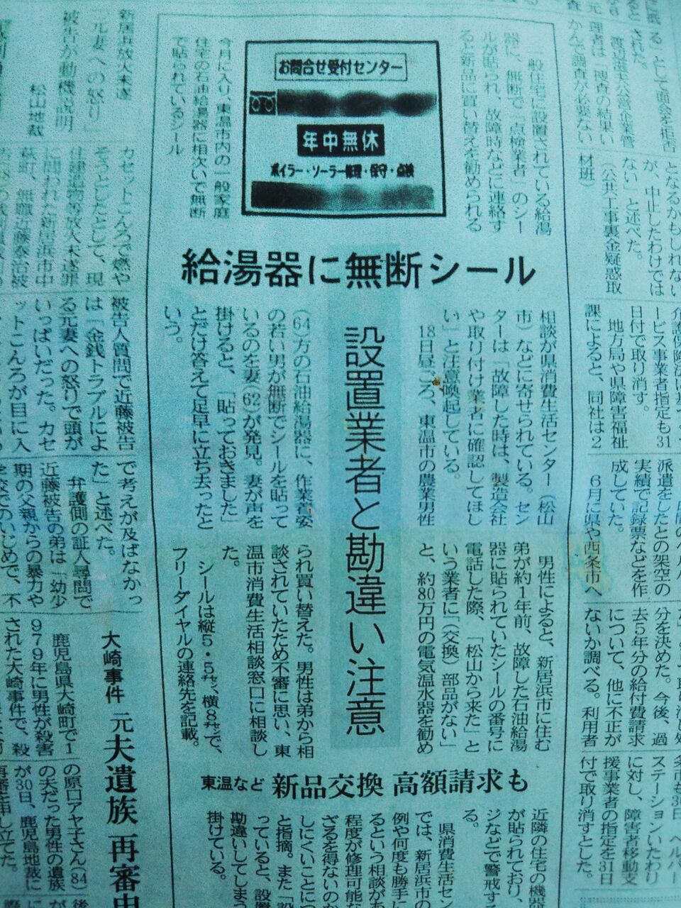 ガス会社や水道局に「その業者は嫌」というと、「またか、では○○で」って言うからガス会社などにも判っていても、代々の「指定業者」の看板を取り上げるのは簡単ではないのだろうな。