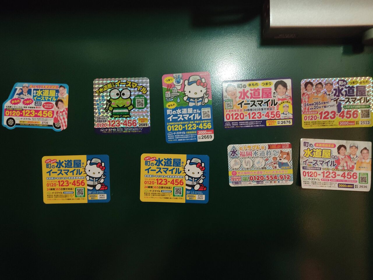 特に多いのが水道修理の業者で色んなとこにマグネット貼っていったりする