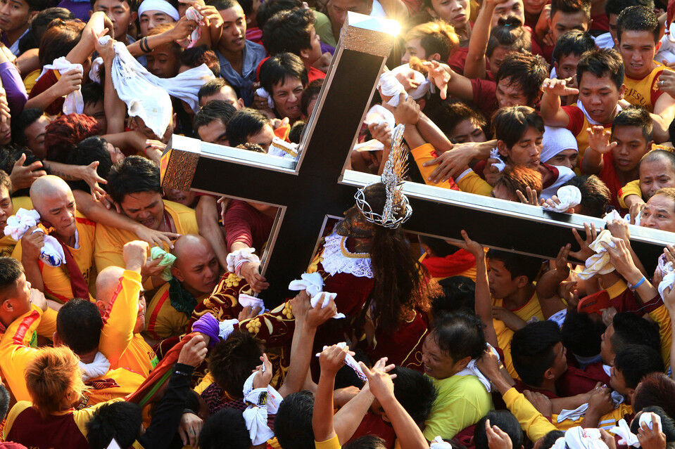 国民の80%以上がカトリック教徒のフィリピンでは、毎年1月9日に首都マニラで、「ブラック・ナザレ」と呼ばれる黒いキリスト像を載せた山車が街を練り歩く祭りが行われ、警察によりますと、ことしはおよそ150万人が参加しました。
