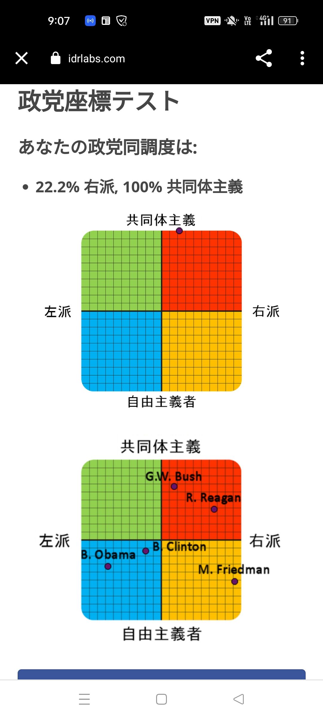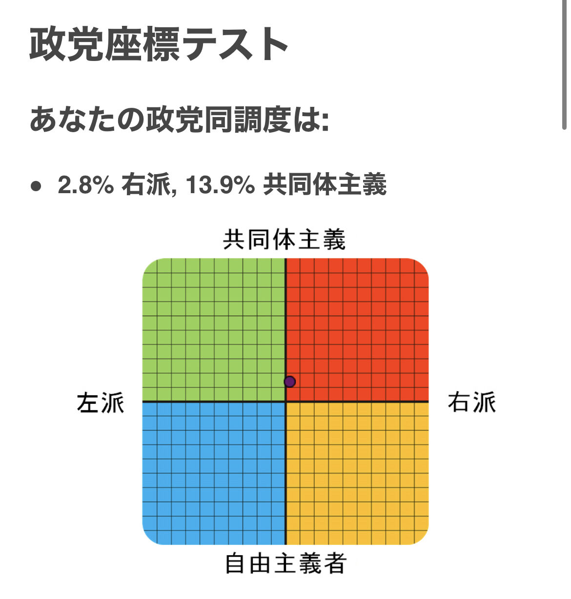 価値観的には右派(このテストでは共同体主義)で、