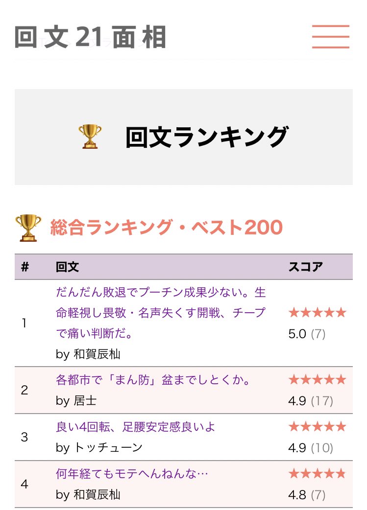 回文王って言うから即興で回文作れる人間のことかと思ったわ