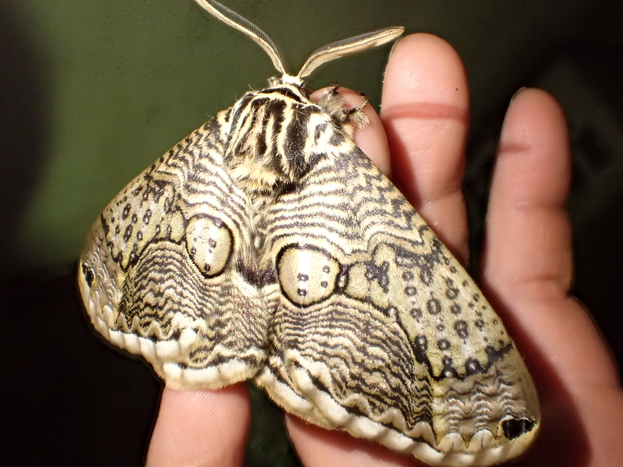 ムラサキシタバは夜中に行動し、光に向かって飛ぶ。保護区は、長雨が止み次第、蝶の好むポプラの木に移す予定。