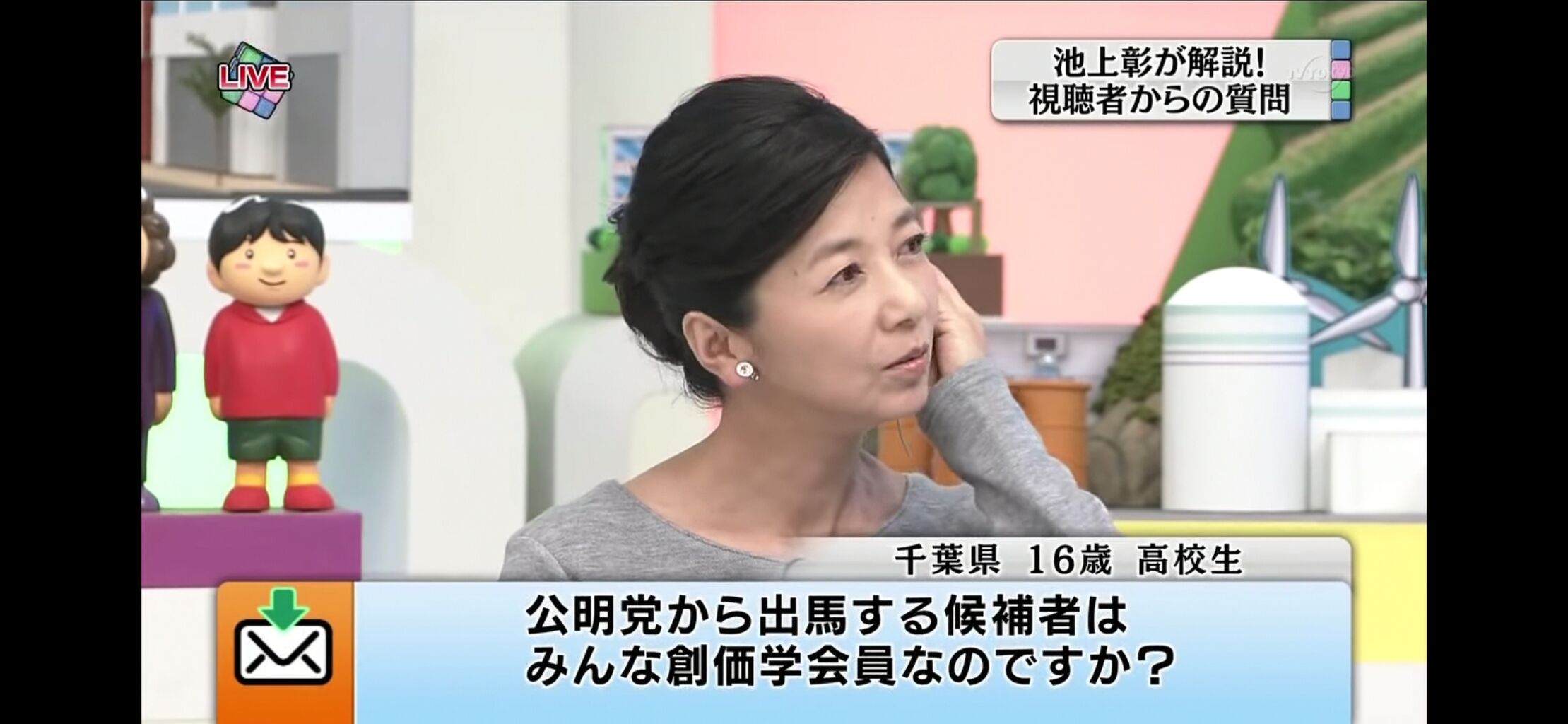 池上は平気で公明党の政教分離で突っ込んだ話してたから何とも思わないぞ