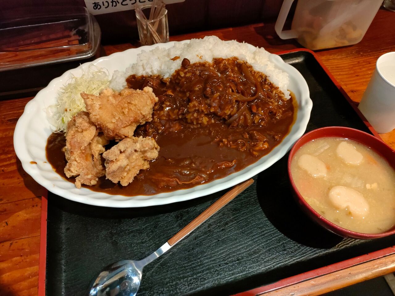 カレーも唐揚げも味噌汁も昔ながらって感じで旨そうでいいな