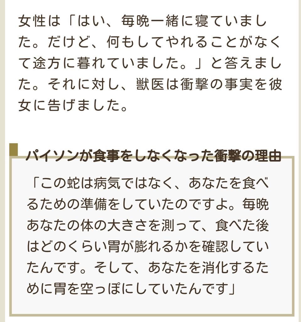 蛇さんに飲み込まれたらどんな感じなんやろ