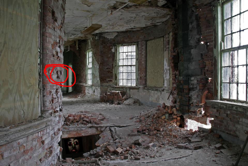 右上の後ろの壁に手がある