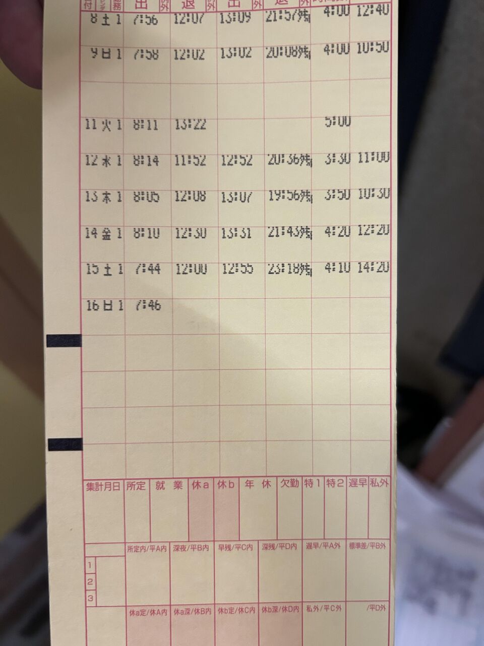 お昼休みにわざわざタイムカード切るんやな