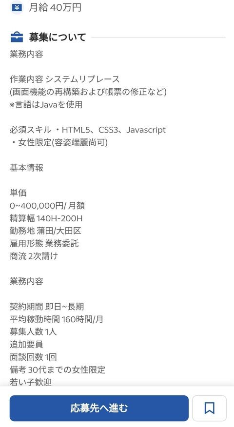 地方ならこんなふざけた求人広告出さんだろう流石東京なんでもある