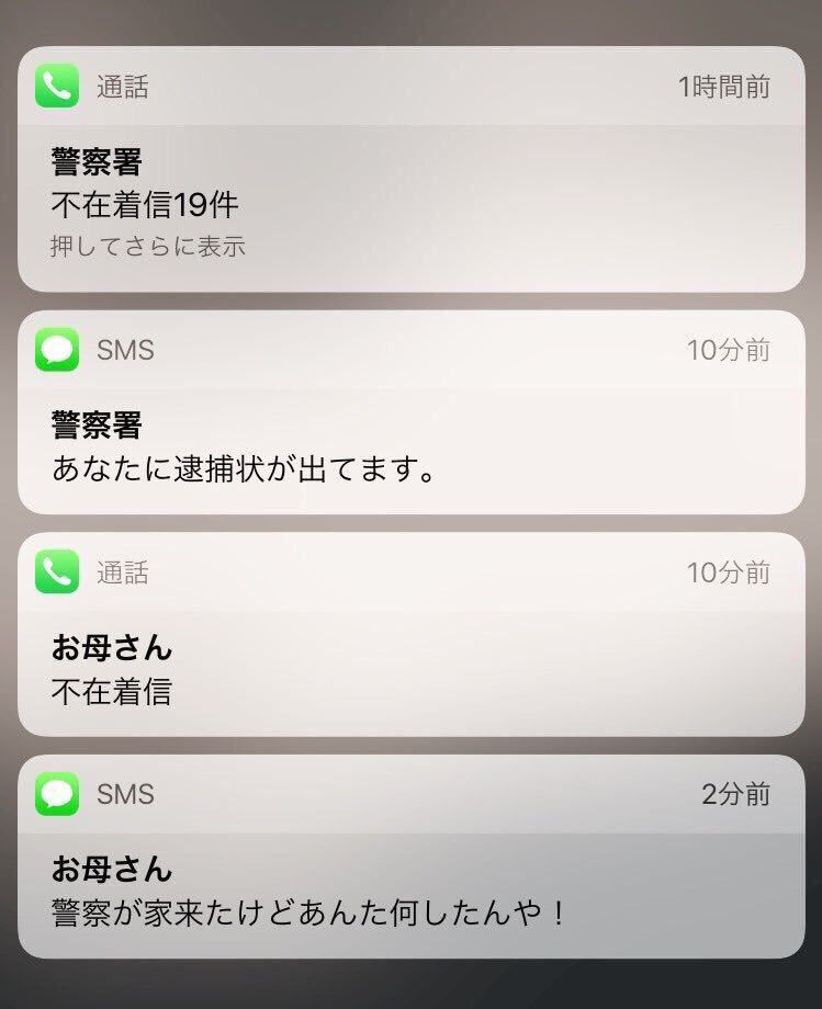 警察署がショートメール送るはずないやろ馬鹿かよ