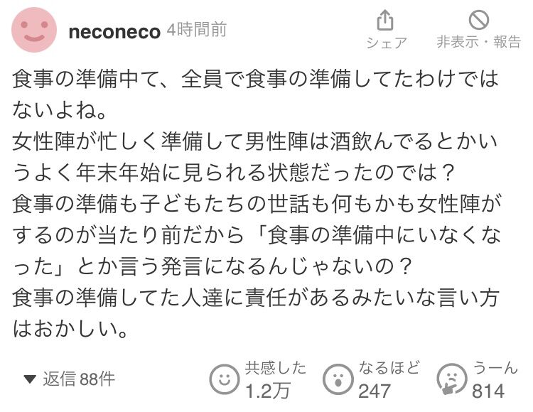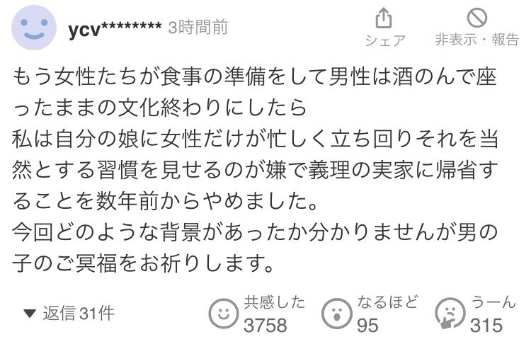 詳細が分からない以上決めつけはよくない、まずは亡くなった子の冥福を祈りましょうみたいなコメが低評価率高かったりしてビビるわ