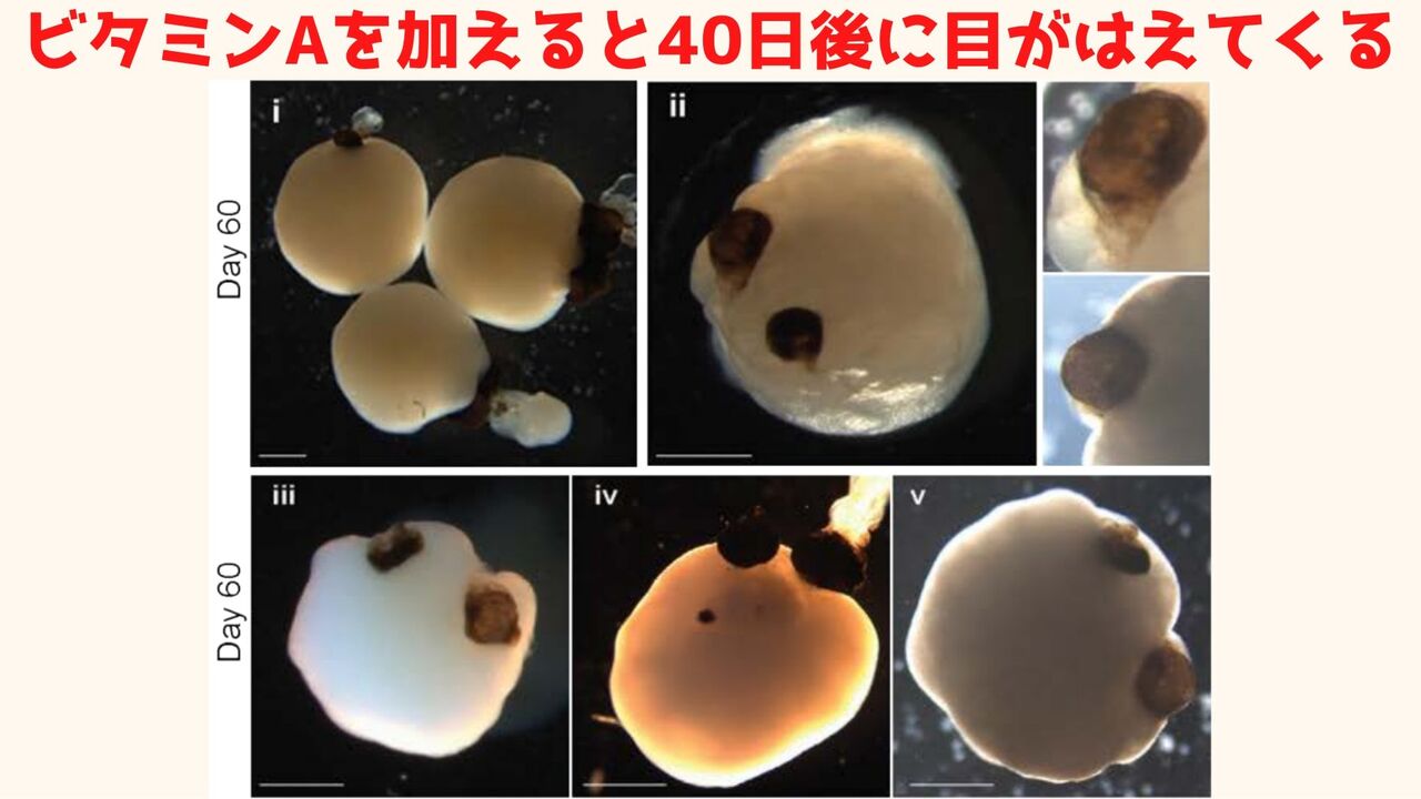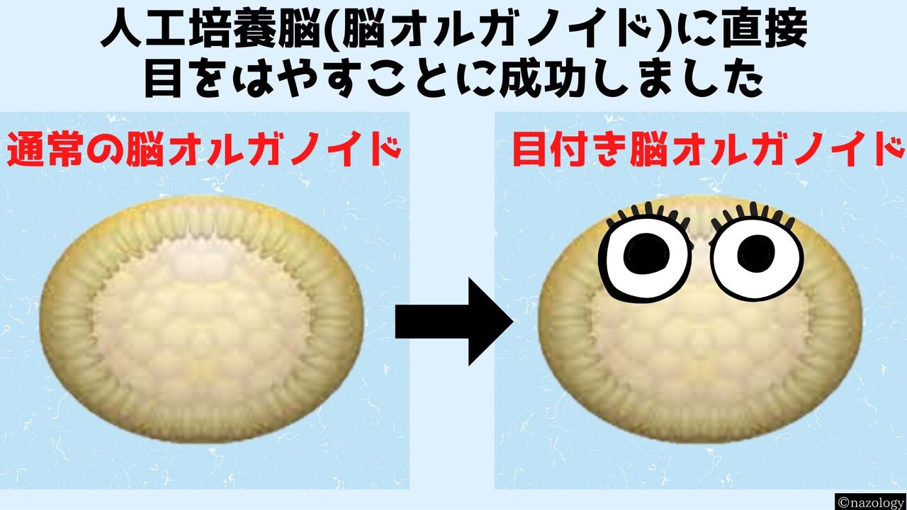 8月17日にドイツのハインリッヒ・ハイネ大学の研究者たちにより『Cell Stem Cell』に掲載された論文によれば、人工的に培養された脳(脳オルガノイド)にビタミンAを加えたところ、完璧に近い目が形成されたとのこと。