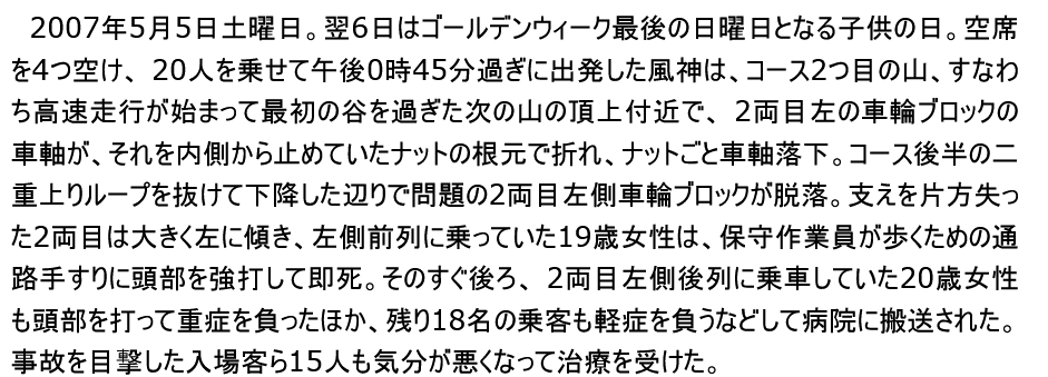 これのちょっと後に後楽園ゆうえんちでも死亡事故あったな