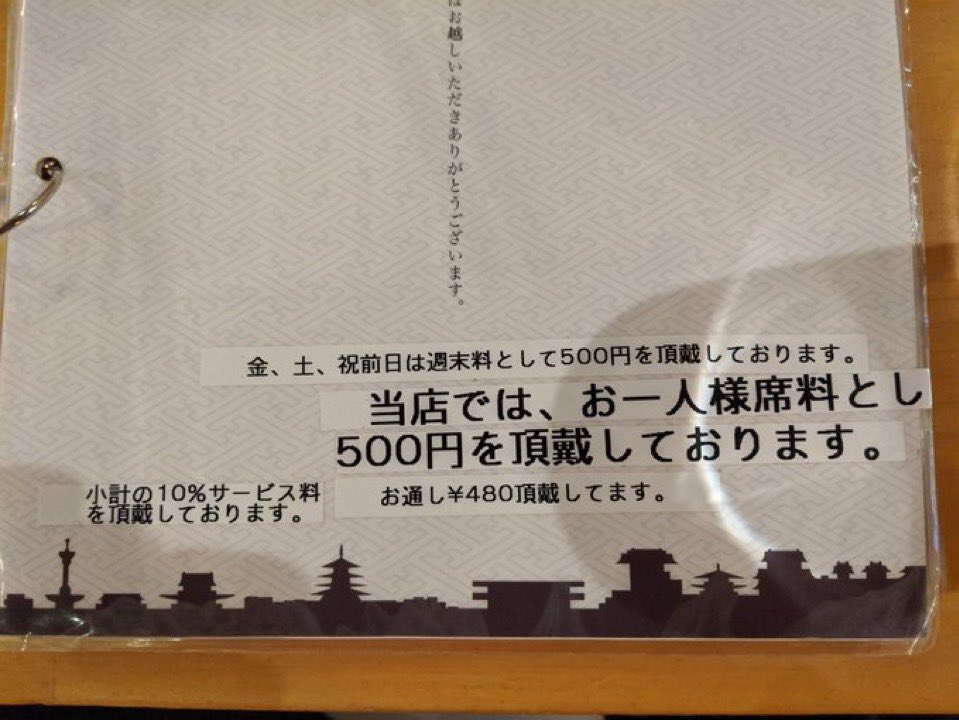 席料とお通し代が両方ある店ってあるんか