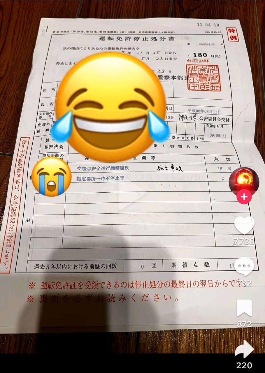 一時停止義務違反もついてるから、その中からなら上のだろな