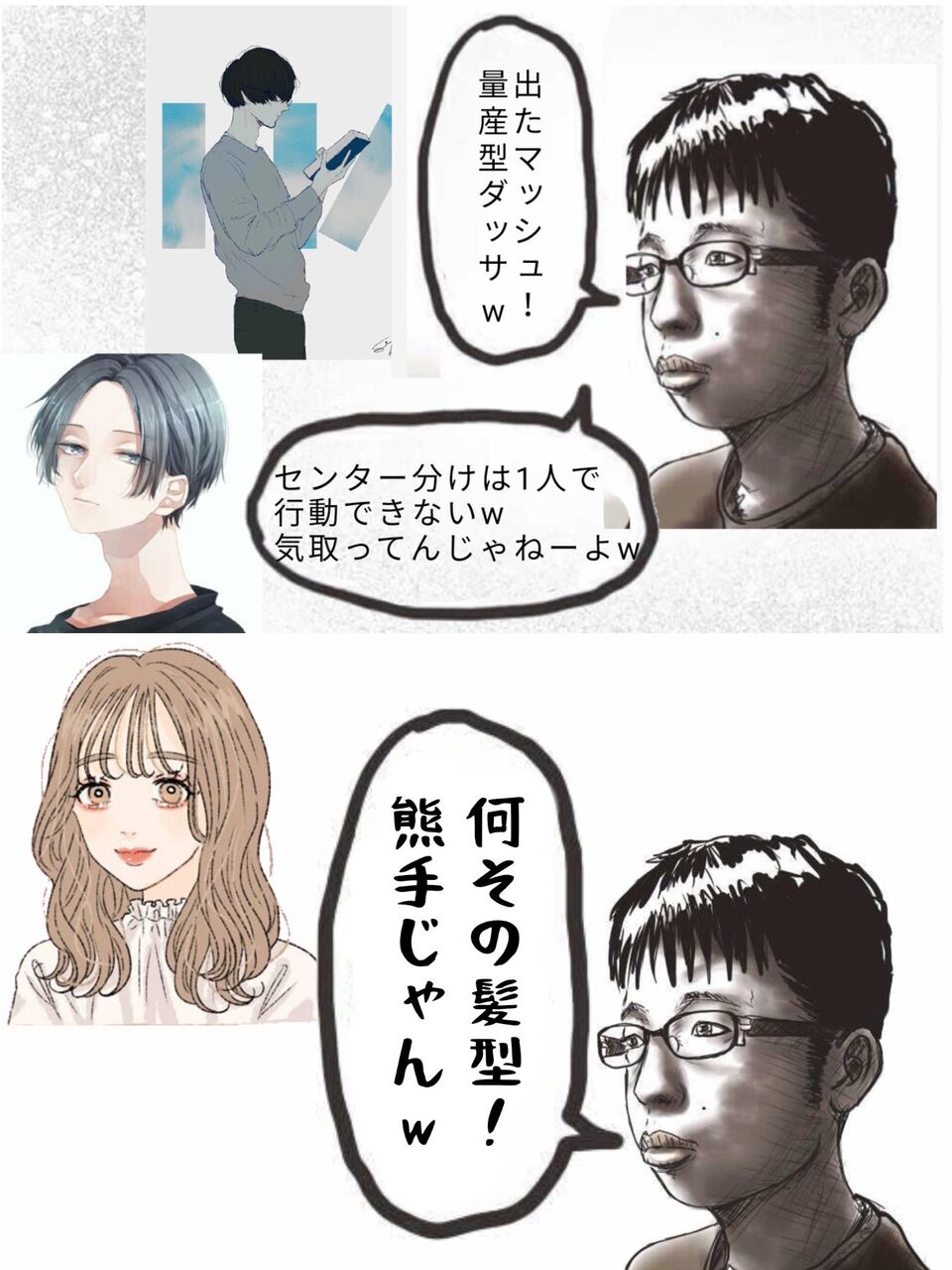 チー牛を40歳にしたようなのとこういう髪したやつが普通に一緒に飯食ってたりする