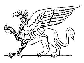 ①鷲の翼と上半身、ライオンの下半身をもつ伝説上の生物