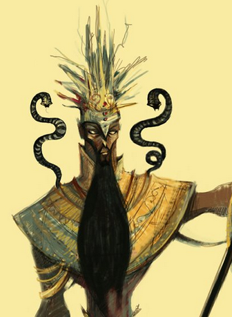 ②悪魔イブリースの呪いにより、両肩から毒蛇は生えた醜い姿に変えられた。蛇は日にふたりの人間の脳みそを要求したという
