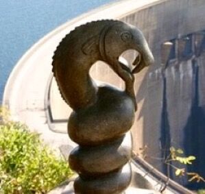 ③ジンバブエとザンビアの国境、カリバ湖の畔にこの竜神の像が置かれている