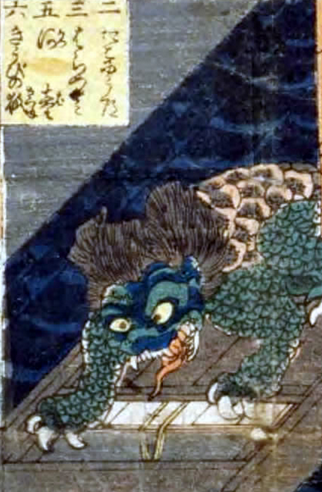 ①姿は魚で頭は虎、尾ひれは常に空を向き、背中には幾重もの鋭いとげを持っている