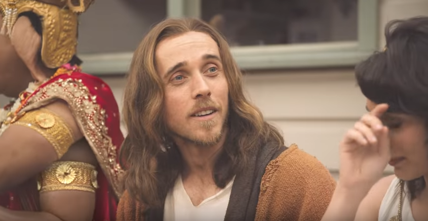 including Jesus, God, Aphrodite, Zeus, Buddha, Ganesh and Moses at a long