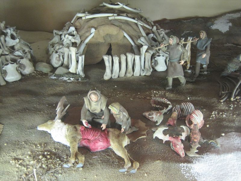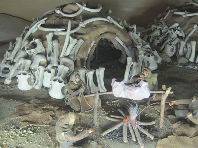 石器時代の生活をミニチュアフィギュアで再現しています。