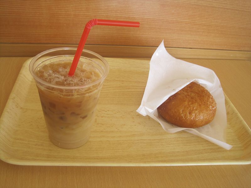 写真は単なるピロシキとアイスコーヒーです。