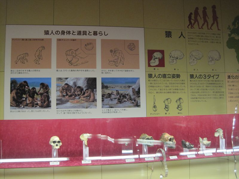 人類の進化の過程を映像やレプリカ品で紹介しています。