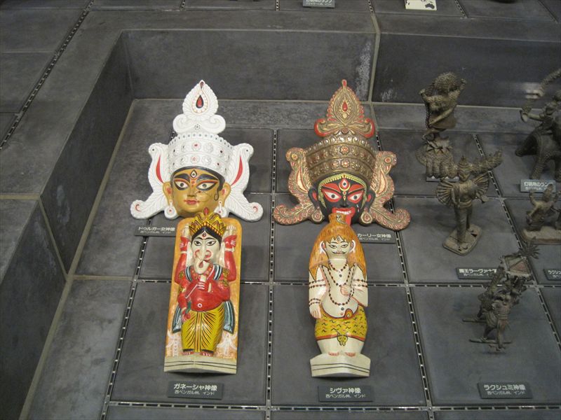 ヒンドゥー教の神々。小さめの像と面が展示されています。