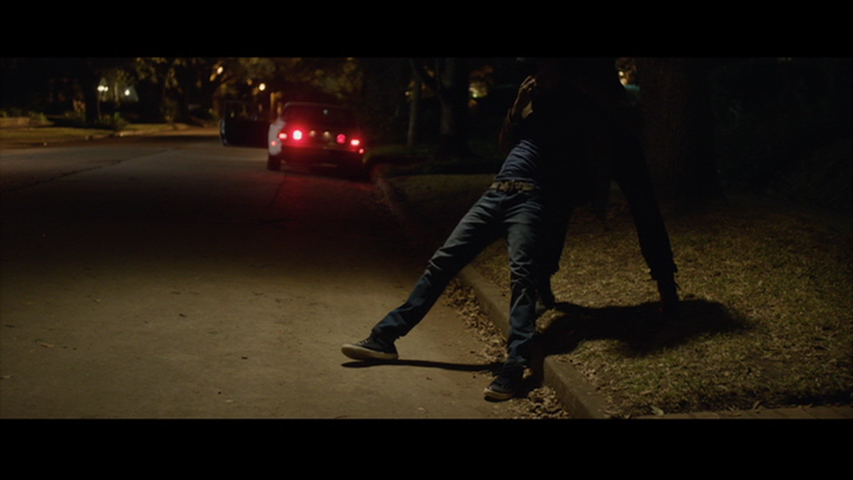 冒頭シーンはとある夜の住宅街。黒人の青年が電話をしながら歩いていると…。