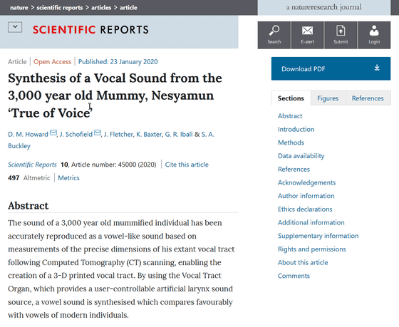 Synthesis of a Vocal Sound from the 3,000 year old Mummy, Nesyamun ‘True of Voice’ | Scientific Reports